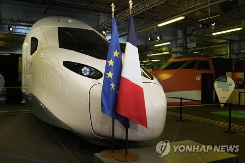 epa09472977 A life-size replica of the next high-speed train TGV is pictured at the Gare de Lyon station in Paris, France, 17 September 2021. SNCF unveiled the next generation of its high-speed TGV trains. EPA/Michel Euler / POOL MAXPPP OUT