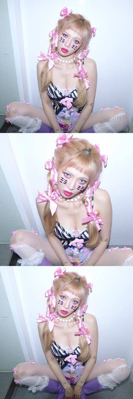 17일 현아는 본인의 인스타그램에 별다른 멘트없이 리본 모양의 이모티콘과 함께 여러 장의 사진을 게재했다.