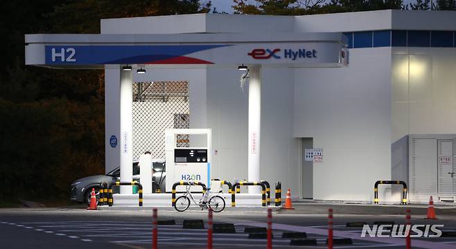 [춘천=뉴시스] 김경목 기자 = 추석연휴를 하루 앞둔 17일 오후 운전자가 강원 춘천시 중앙고속도로 부산 방향 춘천휴게소 수소충전소에서 연료를 충전하고 있다. 2021.09.17. photo31@newsis.com