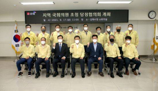 경남 김해시와 더불어민주당 민홍철(김해갑)·김정호(김해을) 의원은 17일 김해시청 소회의실에서 내년도 국비 예산 확보와 지역 현안 추진을 위한 당정협의회를 가졌다.