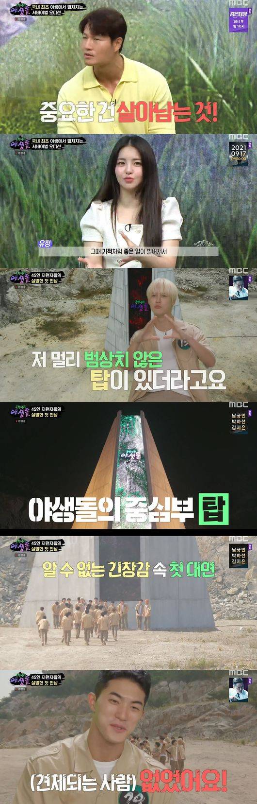 이날 45인의 지원자들이 모두 한 장소에 모였다. 그 곳에는 높은 탑이 자리해 있었다. 김종국은 "이 탑이 야생돌의 상징이다. 이 탑을 통해서 순위와 생존이 공개된다"라고 설명했다. 지원자들은 다른 지원자들과 마주하고 알 수 없는 긴장감에 휩싸였다.