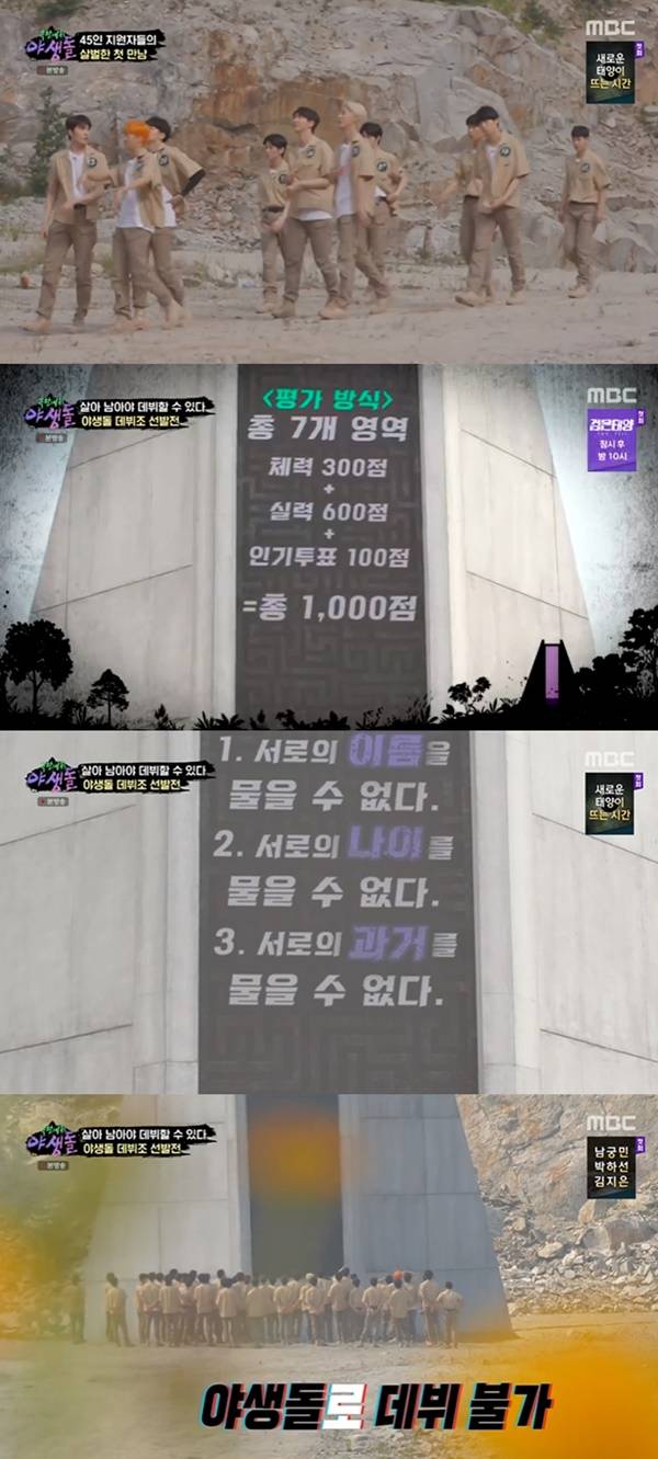 17일 첫 방송된 MBC 서바이벌 오디션 프로그램 '극한데뷔 야생돌'(이하 '야생돌')에서는 3개 조로 나눠진 45인의 지원자들이 목적지인 탑을 향해 이동하는 모습이 그려졌다.