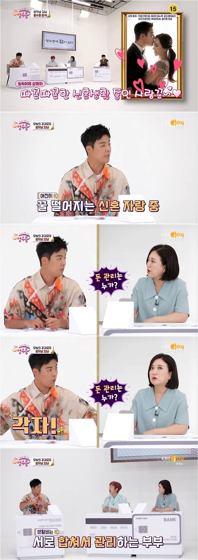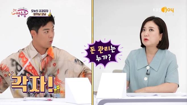 "진짜 이상화를 위해서만 돈을 쓰냐"는 말에 강남은 "큰 돈은 상화 씨가 쓴다"며 "잔잔바리(?) 떡볶이 이런 건 거의 제가 낸다"고도 말해 웃음을 안겼다.(사진=KBS Joy 예능 프로그램 '국민 영수증' 방송 캡처)