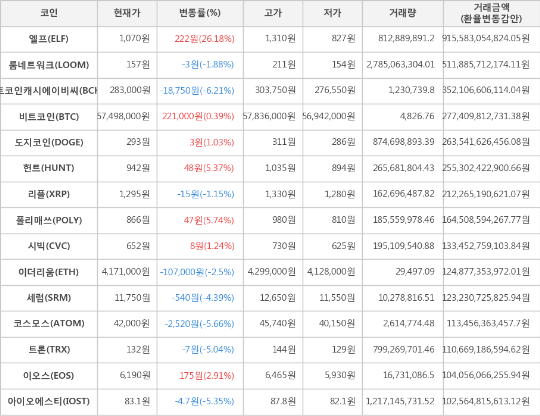 가상화폐 비트코인 0.39% 상승, 엘프 26.18% 상승