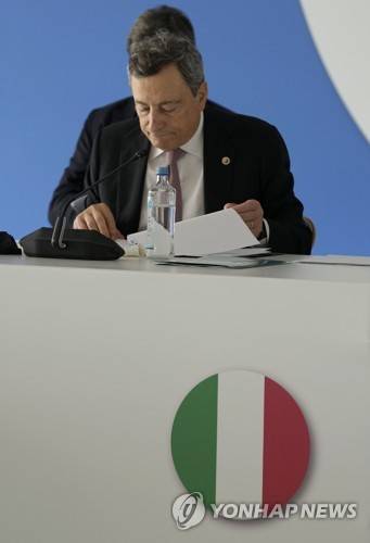 Italian Prime Minister Mario Draghi attends the EUMED 9 summit at the Stavros Niarchos Foundation Cultural Center in Athens, Friday, Sept. 17, 2021. Nine European countries on the Mediterranean are holding a summit in Athens to discuss issues ranging from climate change and the pandemic response to migration and Afghanistan. (AP Photo/Thanassis Stavrakis)