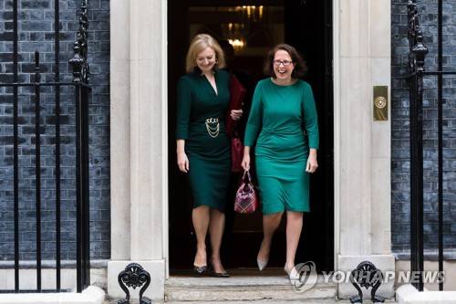 epa09473281 Britain's Foreign Secretary Liz Truss (L) and Britain's Leader of the House of Lords Baroness Evans (R) leave 10 Downing Street after a cabinet meeting in London, Britain, 17 September 2021. This is the first cabinet meeting to take place since Prime Minister Boris Johnson's reshuffle. EPA/VICKIE FLORES