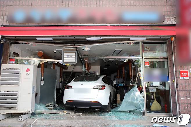 (서울=뉴스1) 이승배 기자 = 17일 서울 도봉구에서 한 승용차가 상가로 돌진해 운전자 1명이 경상의 부상을 입었다. 이 사고로 승용차에 탄 A씨는 가벼운 부상을 입어 현장에 출동한 소방당국으로부터 처치를 받았다.