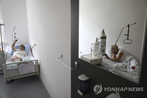 People infected with COVID-19 lie in beds at the Dr. Abdulah Nakas General Hospital in Sarajevo, Bosnia, Friday, Sept. 17, 2021. The COVID-19 rate of infections in Bosnia, a country where only about 12% of the population is fully vaccinated against COVID-19, is on the rise, authorities reported on Friday more than 900 new infections and 30 fatalities over the past 24 hours. (AP Photo)
