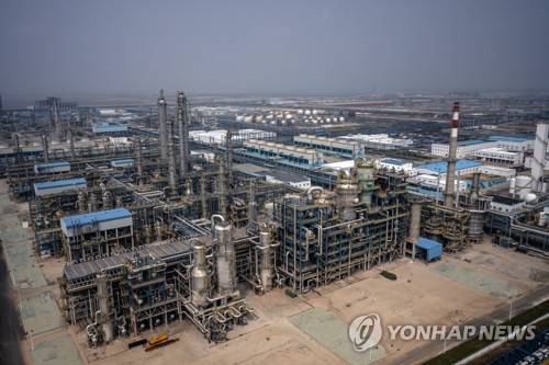 epa09473317 A photo made with a drone shows the Xuwei Petrochemical Base during the organised media tour in Lianyungang, Jiangsu province, China, 17 September 2021. Xuwei Petrochemical Base is one of the seven petrochemical