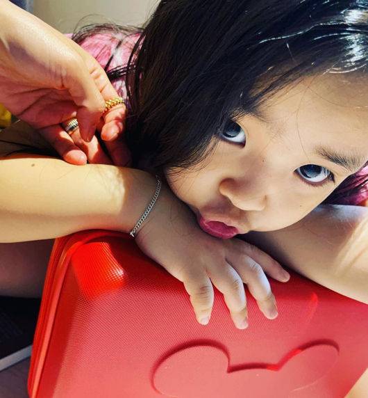 공개된 사진 속에서 이윤지의 첫째 딸 라니는 빨간 색 가방에 턱을 괴고 카메라를 응시하고 있어 눈길을 사로 잡았다.