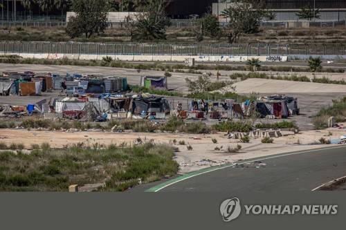 epa09473405 A general view of makeshift shelters erected on the former Formula One street circuit in Valencia, Spain, 17 September 2021. Around fifty Saharawi persons live in shantytowns set up on the circuit. EPA/BIEL ALINO