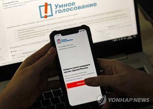 epa09473423 A woman examines Navalny's Smart Voting app on her cellphone in Moscow, Russia, 17 September 2021. Alexei Navalny's Smart Voting app has disappeared from Apple and Google stores as Russians began voting on three-day parliamentary elections. In Russia, on September 17, elections of deputies of the State Duma, governors, deputies of the regional and city levels begin. The main voting day will take place on September 19. Voting in the State Duma takes place in one round according to a mixed system - 225 deputies must be elected from party lists and 225 deputies - from single-mandate constituencies. EPA/SERGEI ILNITSKY