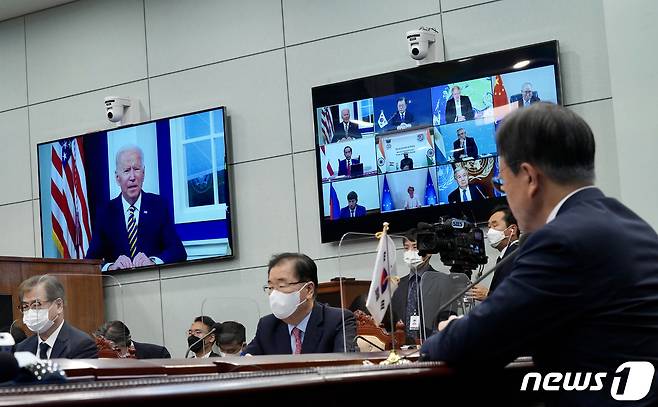 화상 통해 개회사하는 조 바이든 미국 대통령