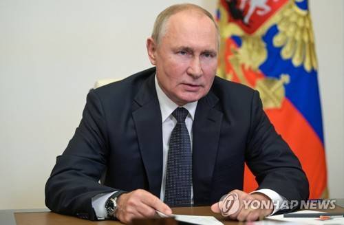 Russian President Vladimir Putin speaks during a meeting with St. Petersburg's governor Alexander Beglov via videoconference at the Novo-Ogaryovo residence outside Moscow, Russia, Friday, Sept. 17, 2021. (Alexei Druzhinin, Sputnik, Kremlin Pool Photo via AP) POOL PHOTO