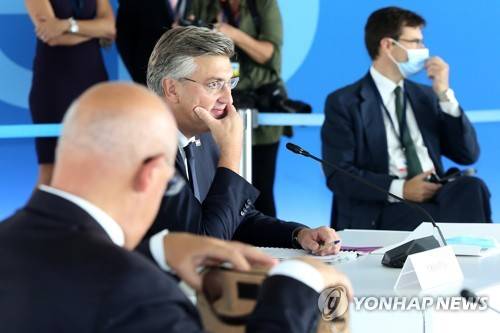 epa09473471 Croatian Prime Minister Andrej Plenkovic speaks during the EUMed9 Summit, in Athens, Greece, 17 September 2021. The agenda of the Summit, which acquires special geopolitical weight, includes security challenges in the Mediterranean that endanger stability in the region, potential new crises, such as the threat of migration flows after the latest developments in Afghanistan, and other crises, the consequences of which Mediterranean countries are already experiencing, such as climate change. EPA/ORESTIS PANAGIOTOU