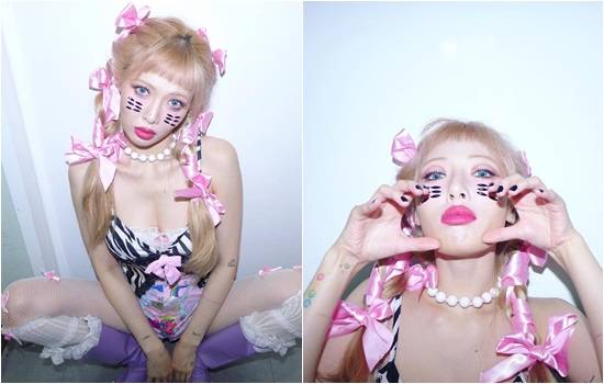 가수 현아가 파격적인 스타일링으로 눈길을 끌었다.