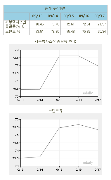 [표]유가 주간 동향