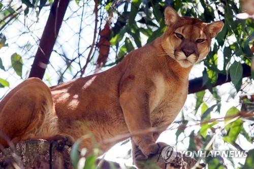 epa09474140 A puma is seen at the Rosy Whalter Zoo in the city of Tegucigalpa, Honduras, 17 September 2021. EPA/Gustavo Amador