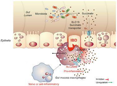 염증성 장질환의 원인은 아직까지 불명확하지만 장내세균총의 불균형이 염증성 장질환을 악화시킨다고 알려져 있다. 장내세균총 불균형으로 인한 비정상적 대사체 과다는 염증 반응 등 병리학적 이상을 일으킨다. 특히, 숙신산은 염증 반응을 촉진하는 대식세포를 활성화해 만성 염증의 원인으로 지목돼 왔으나 정확한 유발 과정은 밝혀지지 않았다.