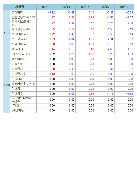 [표]해외 한국 DR 주간등락률