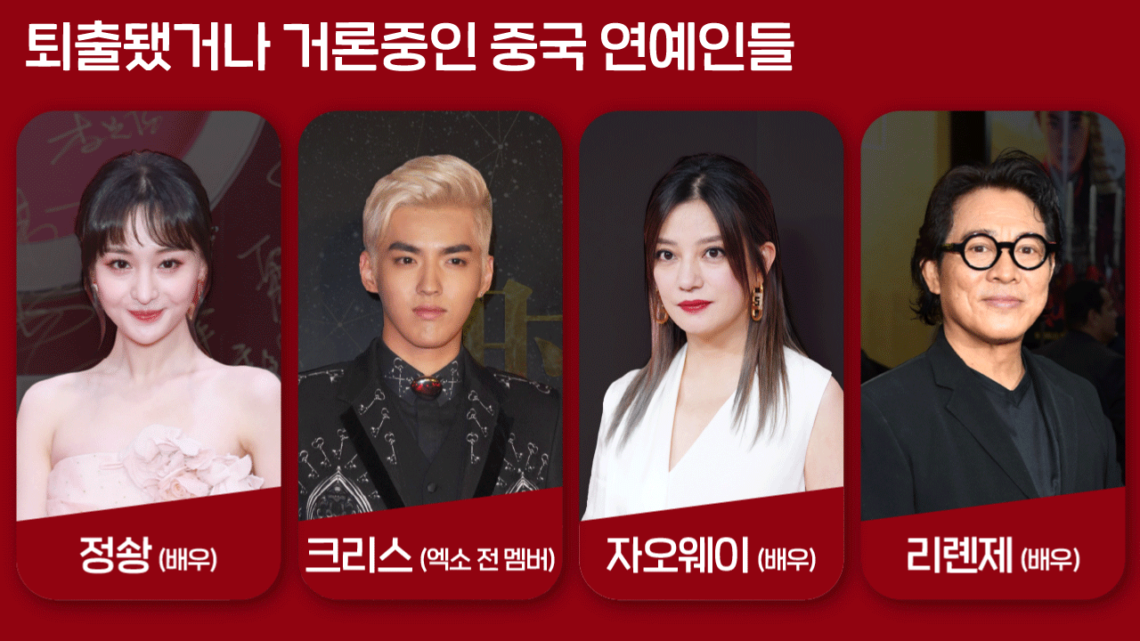 이런 분위기 속에 올해 중국에선 많은 연예인과 엔터테인먼트 산업이 단속의 철퇴를 맞았다. 탈세나 성범죄 등 불법 부도덕 행위로 물의를 빚었다거나, 서구 국가의 국적을 갖고 있다거나, 출연료나 광고료로 지나치게 많은 돈을 받았다거나, 또는 그 외의 알 수 없는 이유로 여러 스타 연예인들이 사라지거나, 퇴출 경고를 받고 몸조심 모드에 들어갔다.