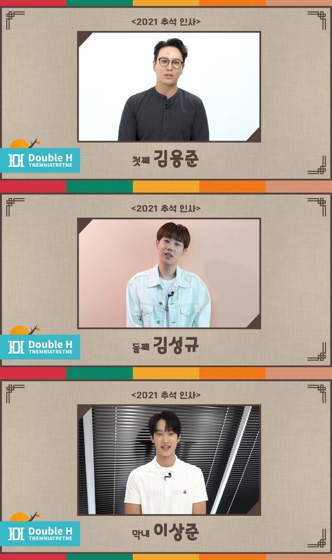 소속사 더블에이치티엔이는 지난 17일 오후 6시 공식 유튜브 채널을 통해 김용준, 김성규, 이상준의 추석 인사 영상을 공개했다.