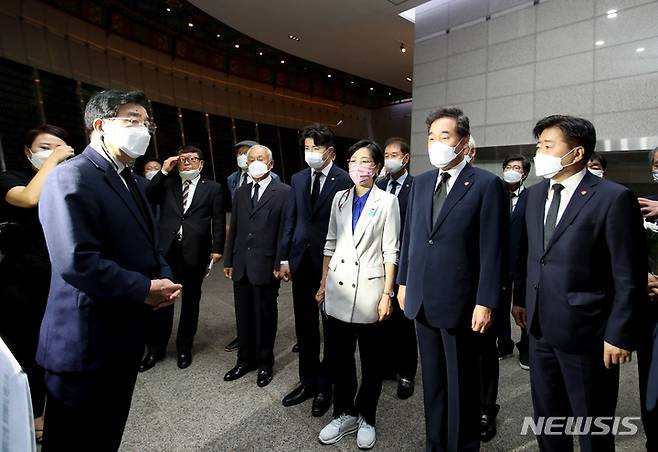 [제주=뉴시스] 우장호 기자 = 더불어민주당 대권주자인 이낙연 전 대표가 18일 오전 제주시 봉개동 제주4·3평화공원을 방문해 희생영령에게 참배 후 위패봉안실을 둘러보고 있다. 2021.09.18. woo1223@newsis.com