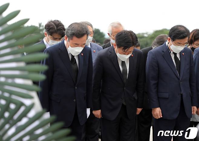 (제주=뉴스1) 홍수영 기자 = 18일 이낙연 더불어민주당 대선 경선 후보가 제주4·3평화공원에서 참배하고 있다.2021.9.18/뉴스1