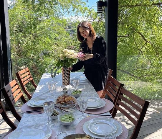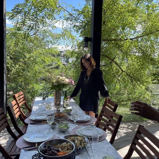 공개된 사진에는 성유리가 지인들과 함께 식사를 즐기는 모습. 아름다운 자연을 배경으로 완벽하게 세팅된 테이블과 화려한 꽃 장식 등이 시선을 사로잡는다.