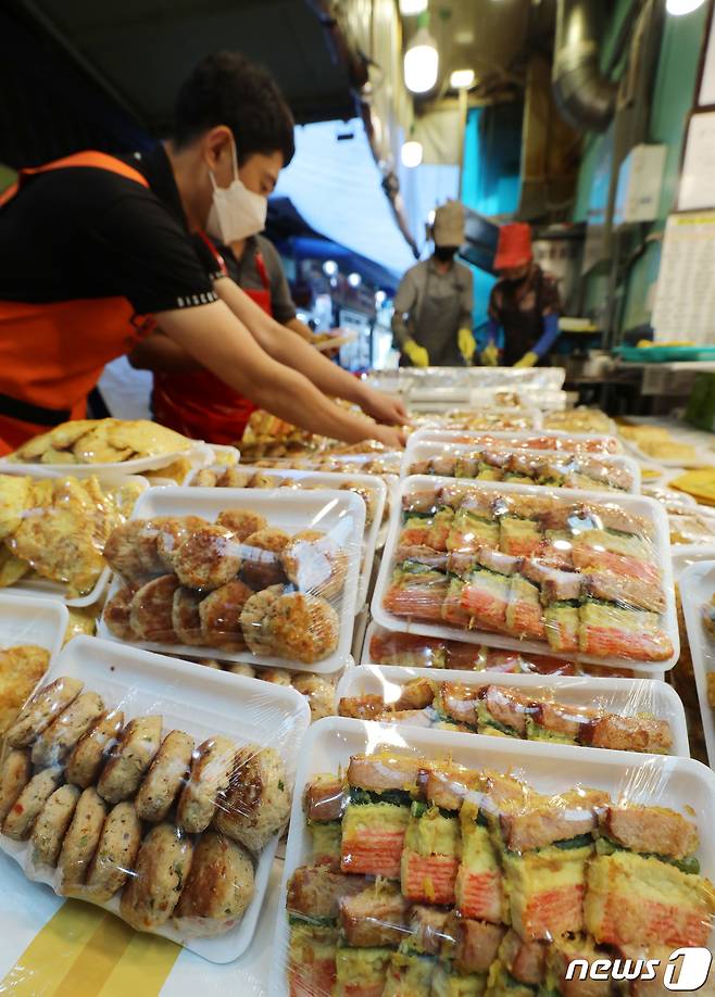 (수원=뉴스1) 김영운 기자 = 본격적인 추석 명절 연휴가 시작된 18일 오전 경기도 수원시 팔달구 못골시장에서 상인들이 영업 준비를 하고 있다. 2021.9.18/뉴스1