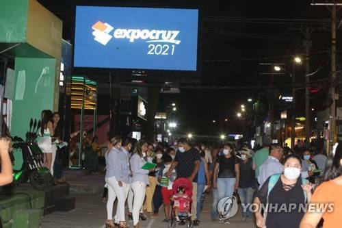 epa09474250 A view of the inauguration of the Expocruz fair, in Santa Cruz, Bolivia, 17 September 2021. The 45th edition of the International Fair of Santa Cruz, Expocruz, the largest business event in Bolivia, was inaugurated this Friday with the participation of at least 1,800 national and foreign exhibitors with a view to economic reactivation after a year of pause due to the COVID-19 pandemic. EPA/Juan Carlos Torrejon