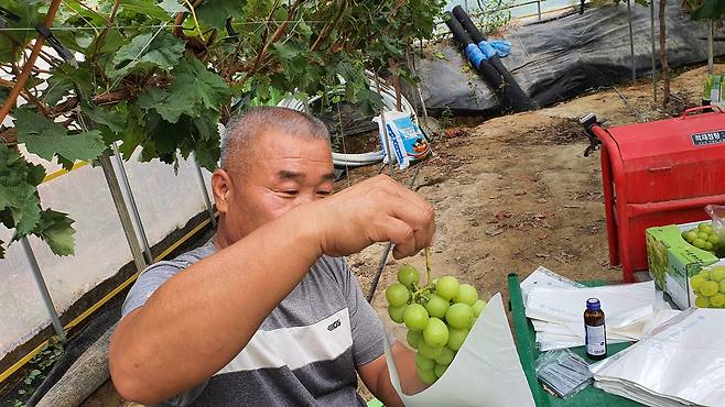 그의 농장 샤인머스캣은 벌써 반 이상이 팔려나가 나무에는 몇 송이 남아 있지 않았으나, 주문 전화는 계속 걸려왔다. 농가들도 대량으로 출하하는 것보다 직거래를 선호한다. 택배 포장을 하는 시간이 걸려도 제 가격을 받고 팔 수 있고 소비자들의 반응에서 보람을 느끼기도 하기 때문이다.