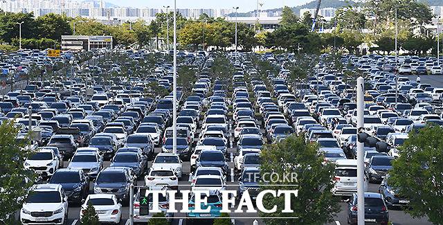 김포공항 국내선 주차장에 가득 찬 차량 [포토]