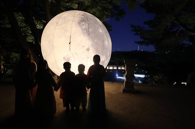 | ▲ 혹시라도 날이 흐려 보름달을 보지 못하더라도 실망하지 말고 바라는 것을 종이에 써 보자.(사진은 17일 오후 서울 종로구 창경궁 풍기대 주변에 설치된 대형 보름달 모형) |