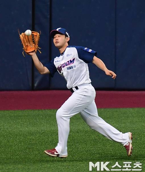 1회 초 무사에서 키움 좌익수 예진원이 두산 정수빈의 타구를 잡고 있다.