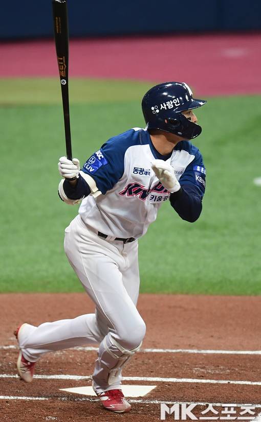 1회 말 무사 2루에서 키움 이정후가 안타를 쳐 주자 2,3루를 만들었다.