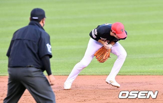 1회말 1사 1,2루 KIA 유격수 박찬호가 LG 채은성의 땅볼 때 포구 실책을 범하고 있다. 실책으로 LG 3루주자 서건창은 득점을 올렸다. 2021.09.18 /cej@osen.co.kr