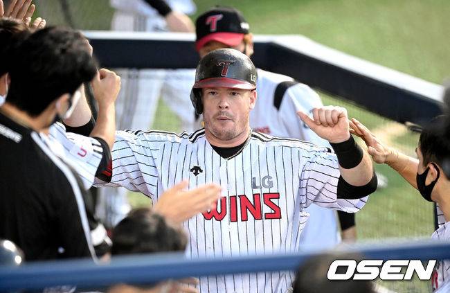 5회말 1사 LG 보어가 추격의 우월 1점 홈런을 날린 뒤 더그아웃에서 환영을 받고 있다. 2021.09.18 /cej@osen.co.kr