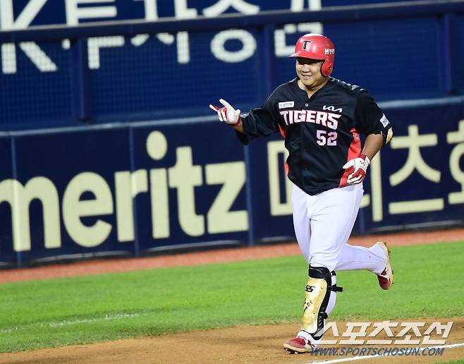 2021 KBO리그 LG트윈스와 KIA타이거즈의 경기가 18일 서울잠실야구장에서 열렸다. KIA 황대인이 7회초 무사 1루에서 좌월 투런 홈런을 치고 그라운드를 돌고 있다. 잠실 =최문영 기자 deer@sportschosun.com /2021.09.18/