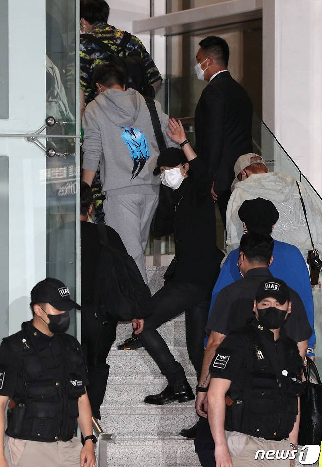 삼엄한 경호 속 인사하는 BTS 지민