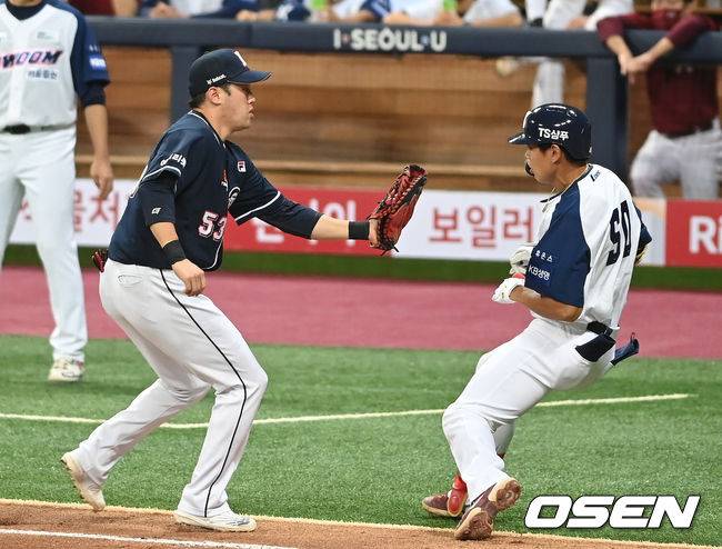 7회말 1사 2,3루 두산 양석환이 키움 송성문의 1루 땅볼때 송성문을 아웃시키고 있다. 2021.09.18/ youngrae@osen.co.kr