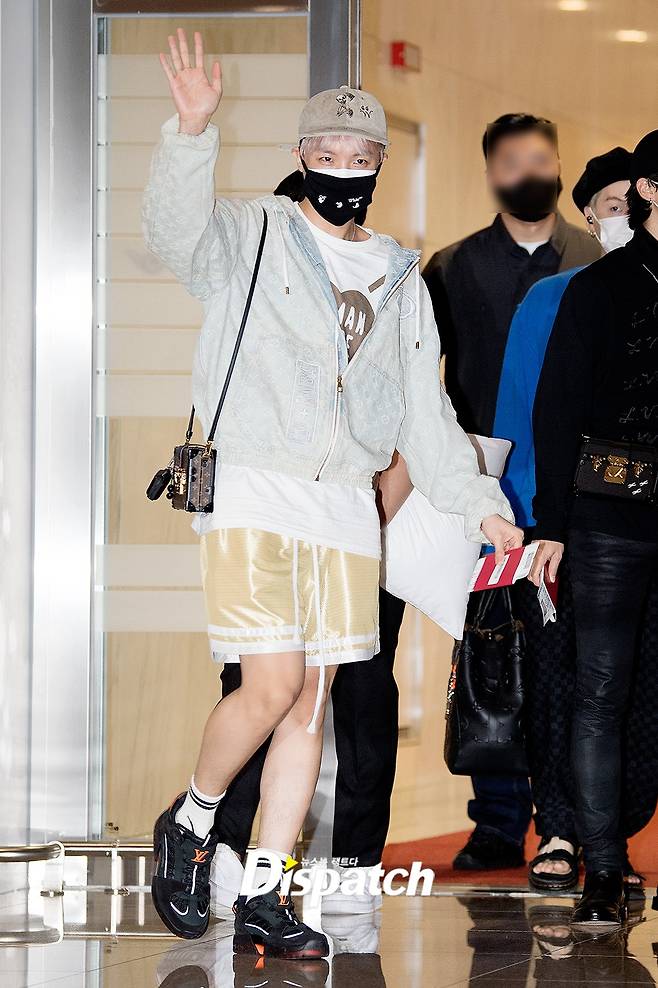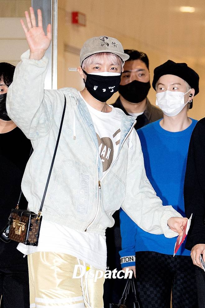 제이홉은 이날 해맑은 미소와 함께 출국장으로 들어섰다. 훈훈한 비주얼도 돋보였다.