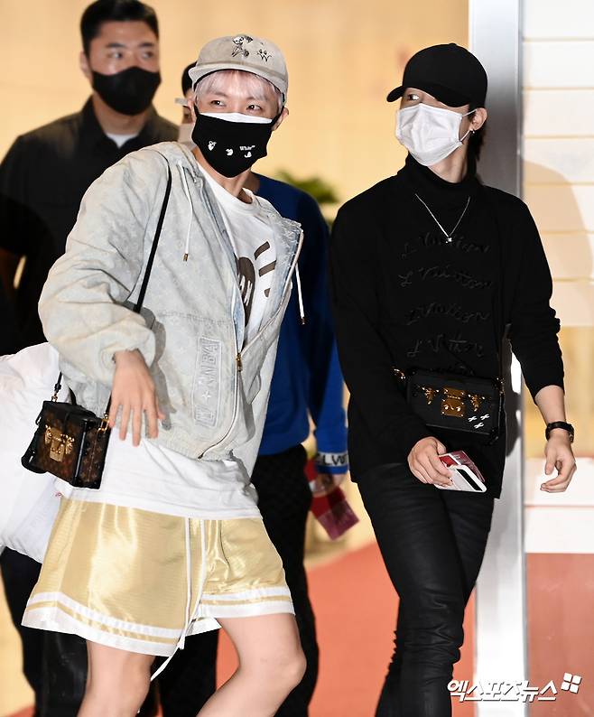 방탄소년단 제이홉, 지민이 출국장으로 향하고 있다.