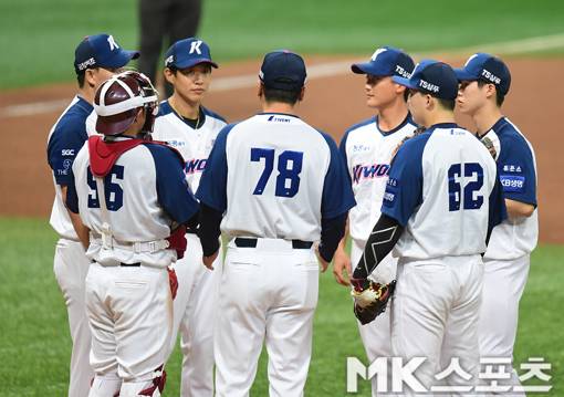 홍원기 감독 '마운드에서 비상대책회의' [MK포토]