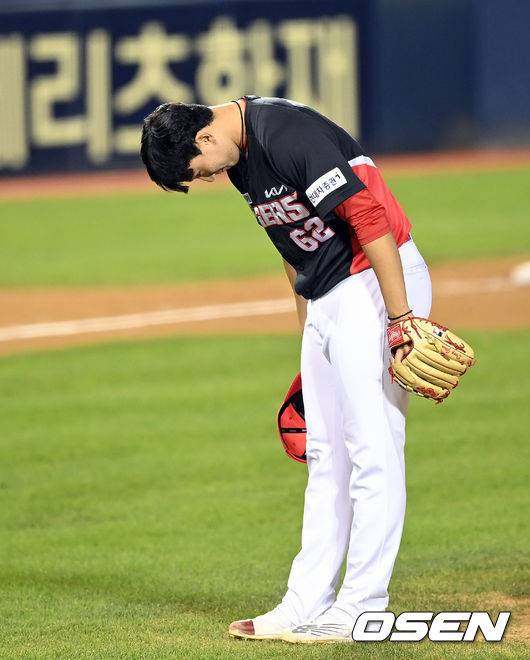 경기 종료 후 KIA 정해영이 한승택을 향해 고개를 숙이고 인사하고 있다. 2021.09.18 /cej@osen.co.kr