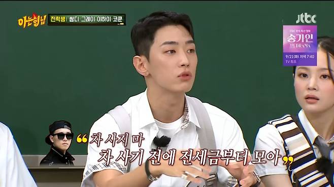 형님들이 '친범파 친쌈파' 분열을 일으키려고 했지만, 그레이는 "팀을 나누면 안 된다"면서 평화주의자적 면모를 드러냈다. 힙합계 FELX 문화에 대해 얘기하던 그레이는 "생애 첫 플렉스는 시계였다. 쌈디가 '차면 좋은 기운이 들어온다'고 해서 집 사기 전에 시계부터 샀다. 그런데 개리 형이 '차 사지마. 그 전에 전세금부터 모으라'고 조언해줬고, 그렇게 했다"고 고마움을 전했다.