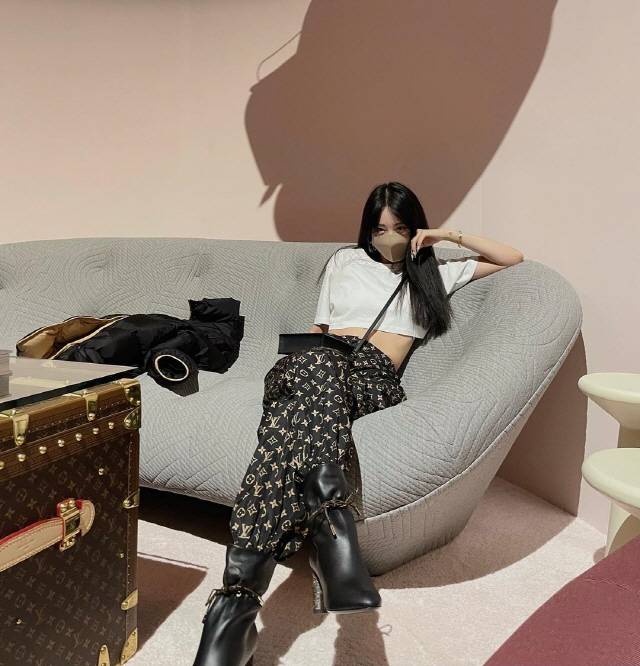 명품 바지에 독특한 부츠를 신고 있는 한예슬은 흰색 크롭티로 잘록한 허리를 드러냈다.