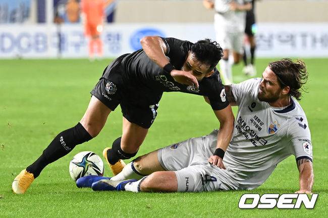 후반 대구 세징야가 울산 불투이스의 태클에 걸려 넘어지고 있다. 2021.09.18 /ksl0919@osen.co.kr