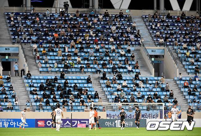 후반 경기장을 찾은 관중들이 열띤 응원을 펼치고 있다. 2021.09.18 /ksl0919@osen.co.kr