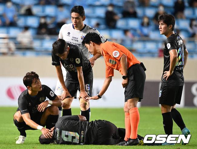 후반 대구 에드가가 파울에 걸려 넘어진 뒤 고통을 호소하고 있다. 2021.09.18 /ksl0919@osen.co.kr